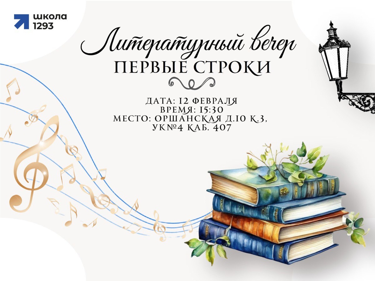 ! Приглашаем ребят 5-11 классов на наш уютный литературный вечер "Первые строки", где каждая история начинается с вдохновения, а каждая строка — с души. 📜 Если вы пишете стихи или прозу, это ваш шанс поделиться своим творчеством с миром! 📚 Если вы просто любите литературу, приходите насладиться теплой атмосферой и поддержать наших юных авторов. Что вас ждет: — Выступления талантливых учеников — Уютная атмосфера с чаем и печеньем — Возможность найти единомышленников и вдохновение 📖 Особый повод: 14 февраля — Международный день книгодарения! Приносите свои любимые книги, чтобы обменяться ими с другими участниками. Подарите книгам вторую жизнь и найдите для себя новое увлекательное чтение! 📅 Дата: 12 февраля 🕒 Время: 15:30 📍 Место: Оршанская д.10к3, 407 каб. 👉 Для участников (чтобы выступить) https://forms.yandex.ru/u/69846b4e84227c1416c56a12 👉 Для слушателей (чтобы присоединиться): https://forms.yandex.ru/u/69846b3690290253f3dcd0e1 Не упустите возможность окунуться в мир с