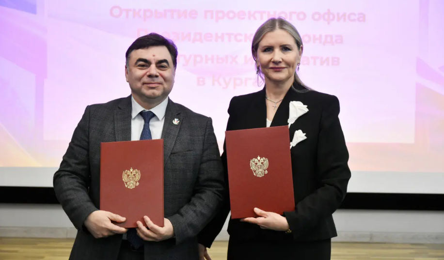 В Кургане состоялось открытие 32-го в стране проектного офиса Президентского фонда культурных инициатив. Он был открыт в День 83-летия Курганской области и стал четвертым в Уральском федеральном округе. Проектный офис призван стать новой точкой притяжения и поддержки для креативных команд региона. Торжественная церемония открытия прошла в Областной универсальной научной библиотеке им. А. К. Югова, на базе которой и разместился офис. В мероприятии приняли участие заместитель генерального директора ПФКИ по образовательным проектам и региональному развитию Евгений Мурахвери, заместитель Губернатора Курганской области по социальной политике Наталья Кирилова и начальник Управления культуры Курганской области Наталья Гончаренко. Церемонию открыл ведущий фолк-коллектив Курганской области «Цветень» — ансамбль, трижды получавший поддержку в грантовых конкурсах Фонда. Партнерство между Президентским фондом культурных инициатив и Правительством Курганской области было закреплено соглашением о сот