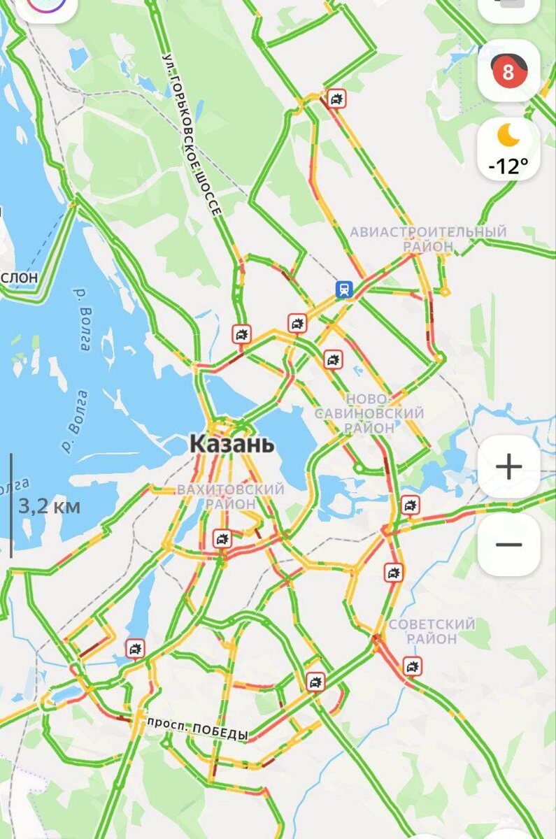 В Казани к этому часу уже образовались 8-балльные пробки.