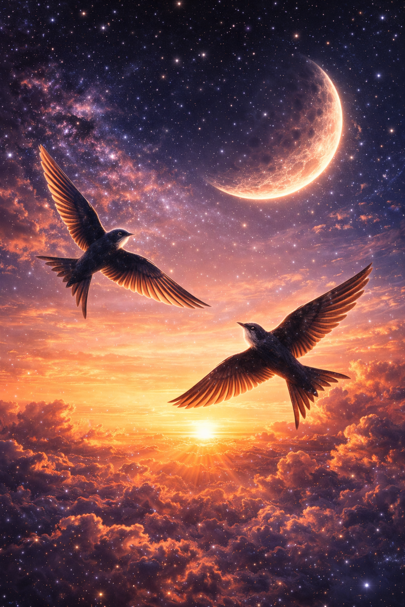 «Иногда свобода — это не бесконечный космос, а пара крыльев и полет навстречу рассвету. Это стихи о простом желании быть собой, любить и находить приют в бесконечной синеве небес».