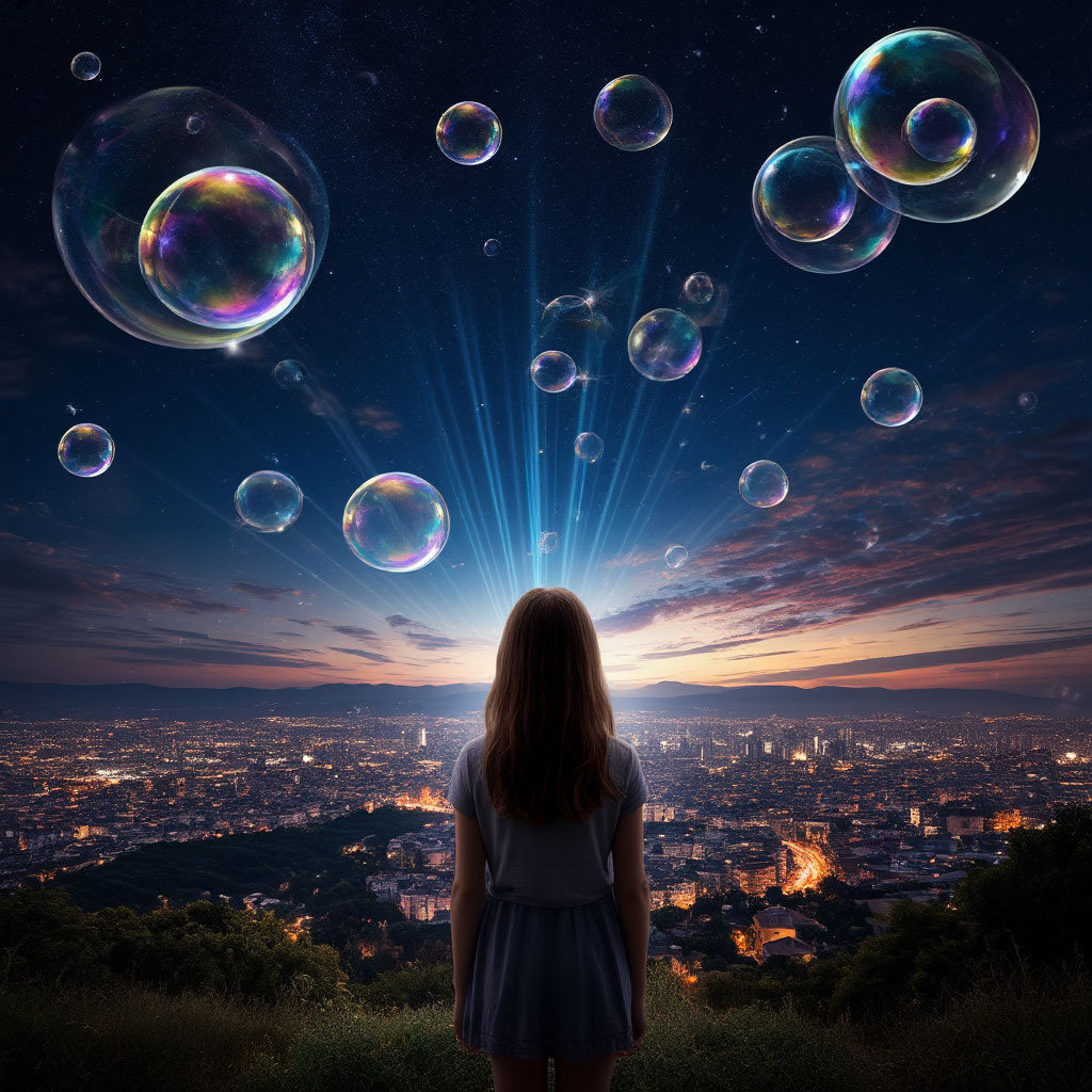 Зашла в гостиную, Вика смотрела мультик, держа в руках свою любимую игрушку и конечно не догадывалась и не обращала внимание, почему за окном было темно. Я раскрыла шторы, темнота за окном не проходила и это уже начало пугать. Быстро накинув куртку, вышла на улицу в надежде увидеть вдалеке рассвет. Пес порывался со мной, но я не стала его брать. На улице было не просто темно, я бы сказала зловеще, нагнетающее, что-то как будто давило сверху. Я стояла рассматривая узоры на небе, которые из волнообразных фигур постепенно начали очерчиваться в полусферы, похожие на мыльные пузыри, которые отделялись друг от друга на ровные расстояния. И это была не игра воображения, что-то действительно происходило. Собаки в округе не лаяли а завывали переходя на рычание, ощущая опасность. С каждой секундой мне становилось всё страшнее. Почувствовав легкий озноб от внутреннего переживания, набрала номер Андрея, но в ответ услышала: -аппарат временно не доступен, перезвоните позже.