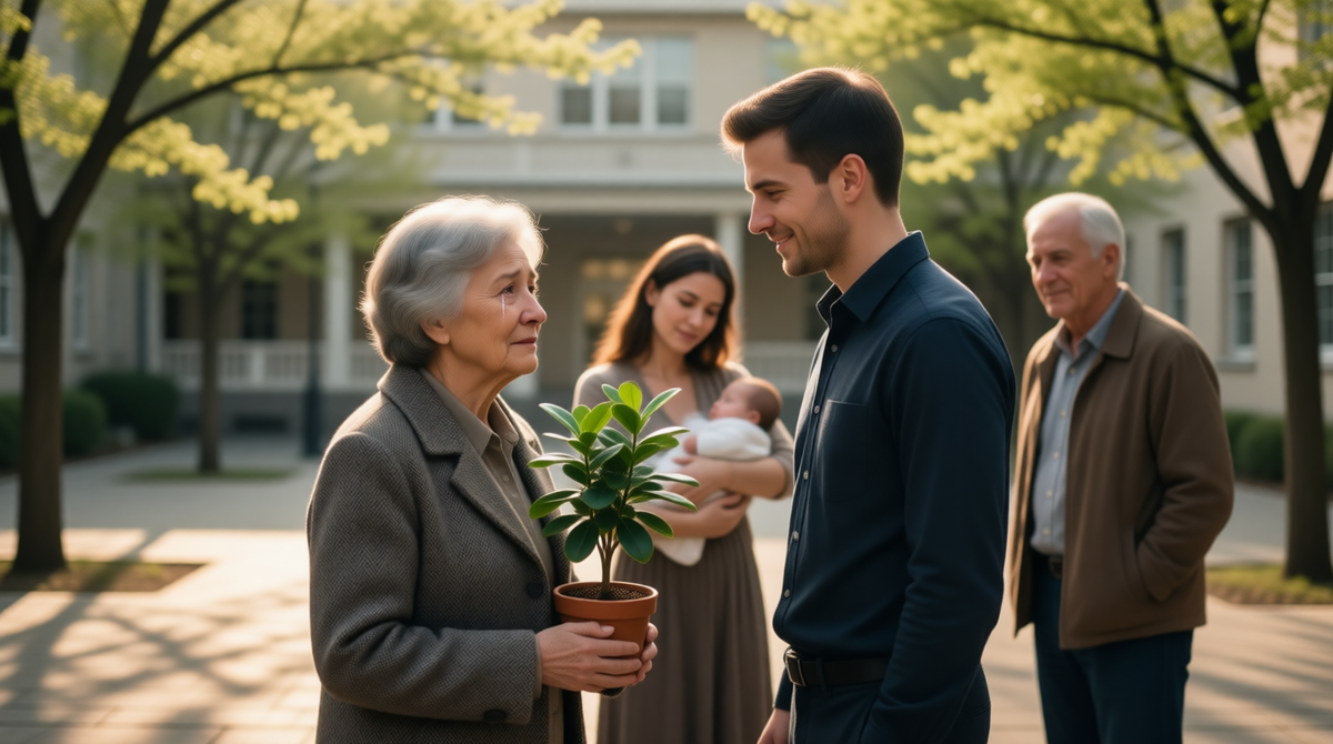 Выписывали её в солнечный день. Во дворе больницы ждали все: Олег (её муж), Алина с Матвеем на руках — и Алексей. Держал в руках не букет роз, а маленький горшок с фикусом.