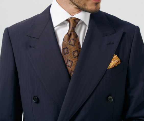 - Добавить точку интереса. На фоне однотонного пиджака или костюма небольшой акцент цвета и фактуры притягивает взгляд и добавляет образу сложности. Это как запятая в длинном предложении — делает его живее.