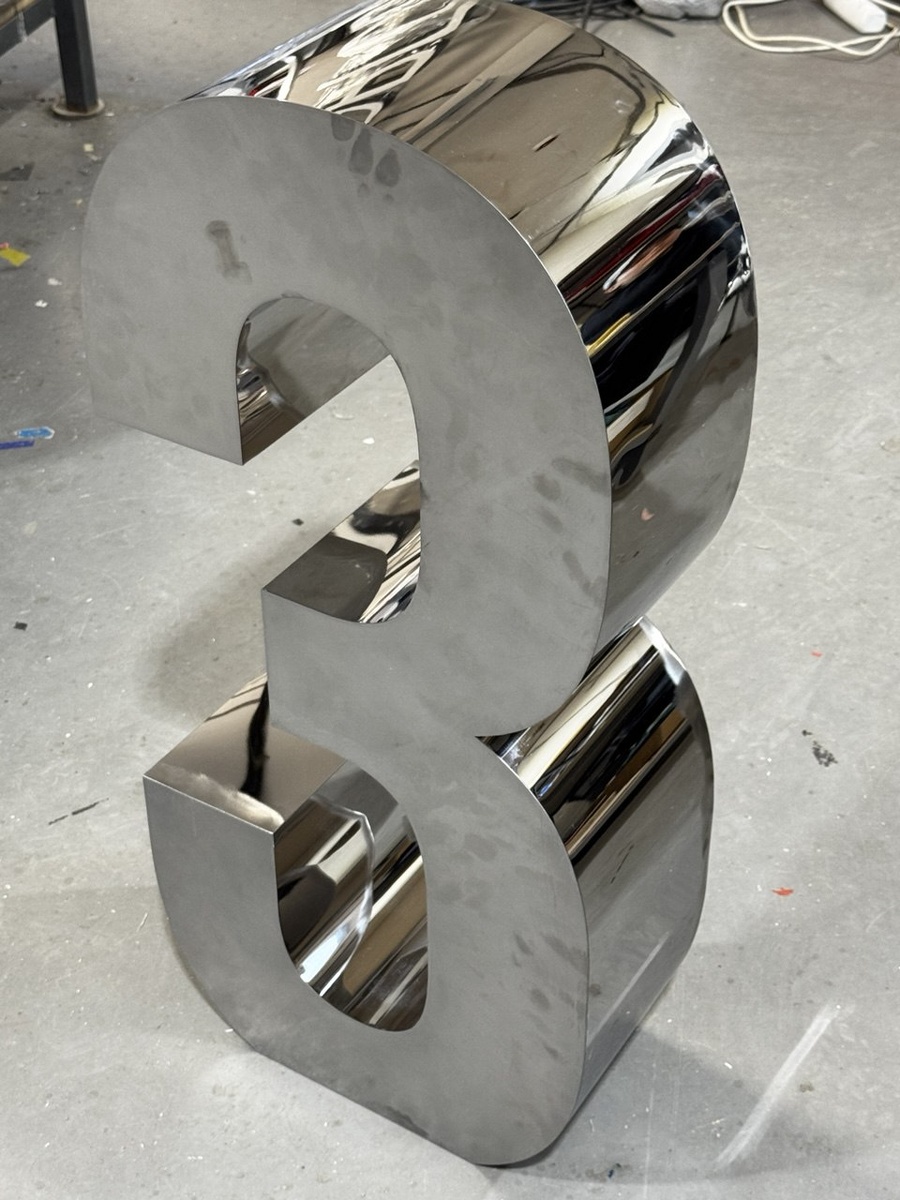 Поскольку изделие выполняется в премиальном исполнении, сварочный шов по торцу должен быть непрерывным, ровным и однородным. После сварки его тщательно шлифуют и полируют до состояния, когда он становится неотличим от основной поверхности, создавая впечатление, что цифра выточена из цельного металлического бруска.