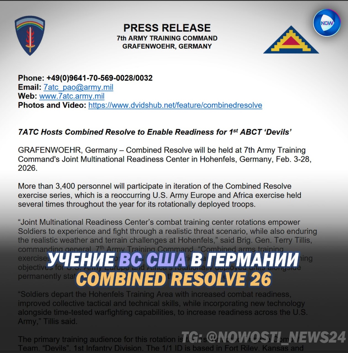В период с 3 по 28 февраля 2026 года на территории Германии проводится учения Combined Resolve 26