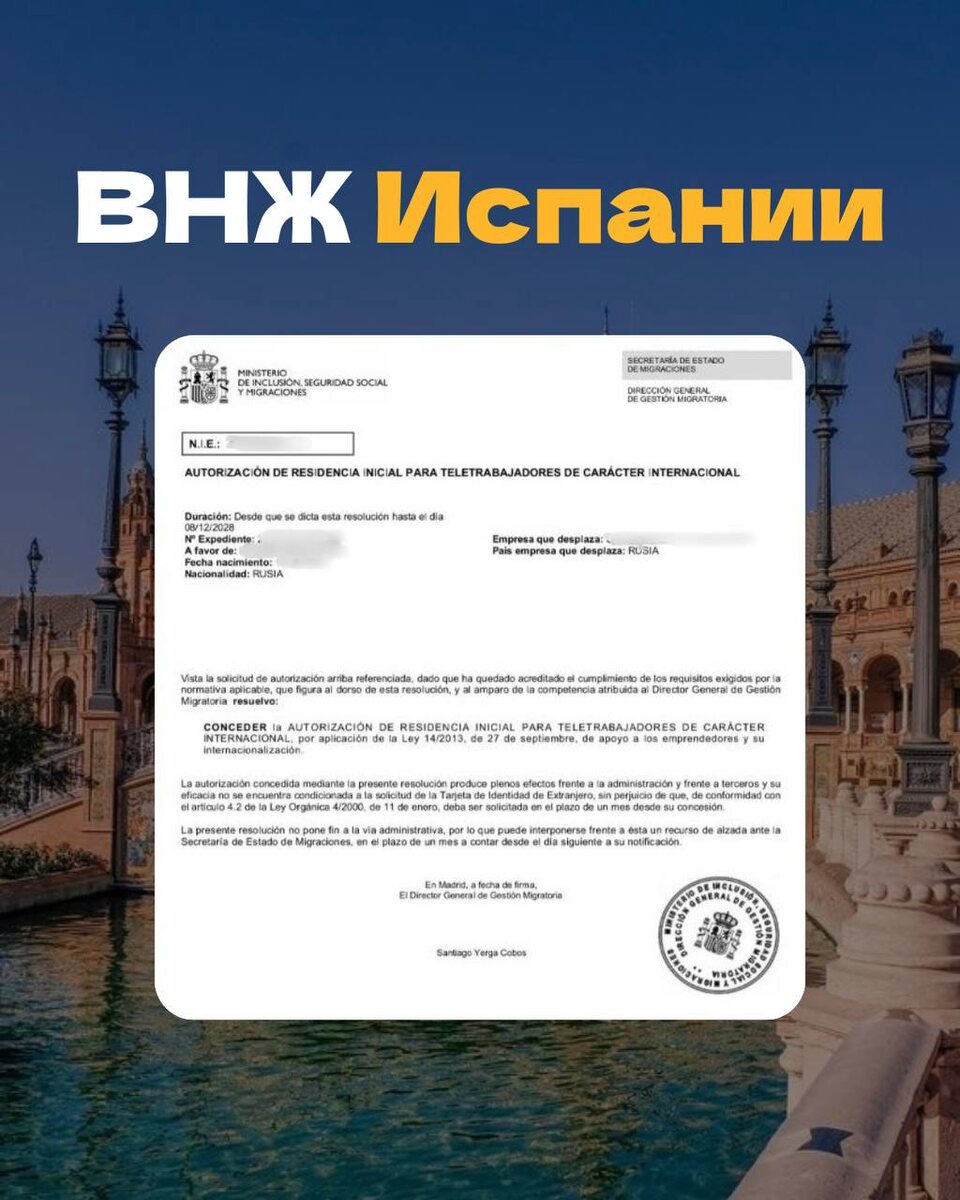 : 🔜 Михаил обратился к нам в октябре с запросом на оформление ВНЖ Испании (Digital Nomad Visa). Раньше он неоднократно делал у нас шенгенские визы, но после нововведений, решил упростить себе жизнь и не подаваться на визу, каждый раз как он собирается куда-то полететь - считаем это очень мудрым решением. 📎 Как происходил процесс работы: 😮Начали работу мы в ноябре, после уточнения всех деталей и полного убеждения, что Михаил проходит по всем актуальным требованиям. 😮Примерно за 20 дней мы подготовили полный пакет документов для подачи. Процесс шел быстрее чем обычно, так как у Михаила на руках была действующая виза до 28.02.2026 г. 😮Михаил прилетел в Испанию 6 декабря и на следующей неделе все документы были поданы. ✅ 9 января 2026 года мы получили одобрение ВНЖ для Михаила. Хотите спокойно летать в Европу не волнуясь и не тратя каждый раз время на подачу документов на визу? ВНЖ — отличное решение проблемы. #vte_ВНЖ Помощь в оформлении ВНЖ: @vte_relocation