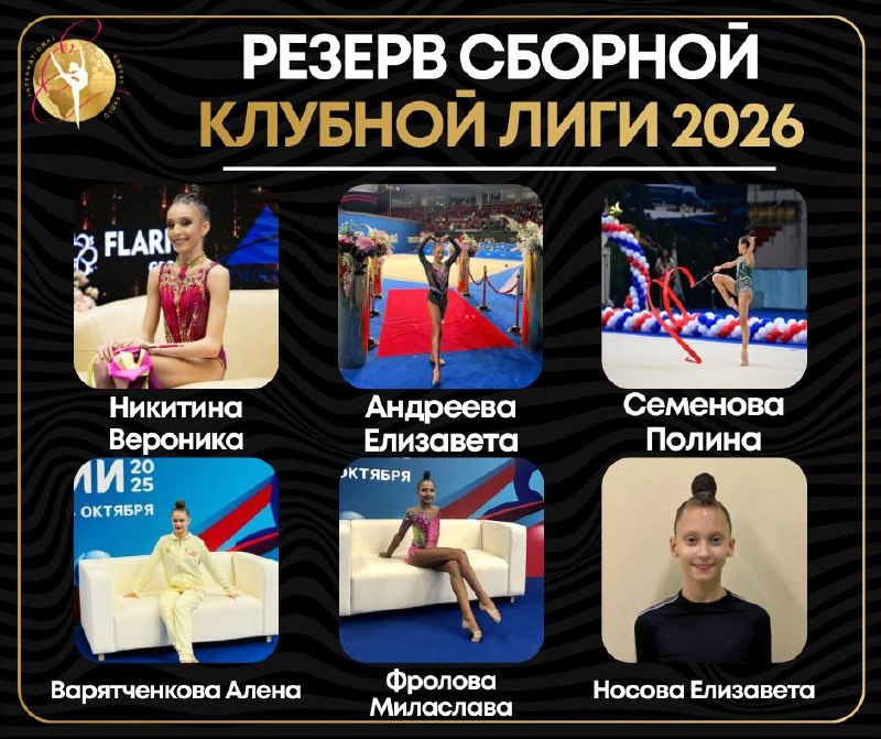 )⚡️ В этом году впервые на Экспертном Совете АСКХГ было принято решение о формировании резервного состава сборной команды Клубной Лиги. 🎗Эти гимнастки уже показали стабильные результаты в клубной системе и продолжают работу на пути к новым большим стартам. ✨В резервный состав среди Юниоров вошли: • Андреева Елизавета (2011) — Москва, СК «SportLife» Тренеры: Павлова Е.В., Демидова А.Э. • Семенова Полина (2011) — Московская область, г. Раменское, ЦГ «Ника» Тренеры: Шиллерт В.Е., Жевакина К.Р. • Варятченкова Алена (2011) — Московская область, г. Звенигород, СК «Школа Ольги Капрановой» Тренер: Котова А.А. • Фролова Миласлава (2012) — Москва, СК «КолибриСтар» Тренеры: Павелковская О.Н., Атауллина А.Р. • Носова Елизавета (2011) — Москва, РСОО «Академия художественной гимнастики» Тренеры: Нефедова Е.Ю., Мархакшинова В.Н., Герцикова Е.Н., Синицына Е.М. • Никитина Вероника (2012) — Москва, АНО СК «Ювента» Тренеры: Муравьева Н.Х., Калинина А.С. 👏Поздравляем гимнасток и их тренеров с