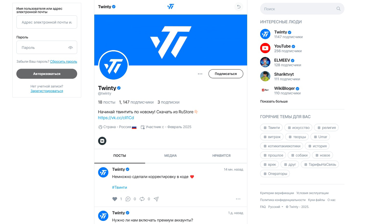 Введение Twinty — это инновационная социальная сеть, созданная в феврале 2025 года, которая стремится объединить людей по всему миру, предоставляя платформу для общения, обмена идеями и совместного творчества. Вдохновленная духом сотрудничества и взаимопомощи, Twinty предлагает уникальные возможности для пользователей, желающих расширить свои горизонты и найти единомышленников. Основные функции В Twinty Вы можете легко находить людей, разделяющих Ваши интересы. Платформа предлагает мощные инструменты для поиска и фильтрации пользователей по различным критериям, что позволяет Вам общаться и обмениваться идеями с теми, кто действительно Вам близок. Делитесь контентом Twinty предоставляет пользователям возможность загружать и делиться разнообразным контентом, включая фотографии, видео и текстовые сообщения. Участники могут обсуждать актуальные темы, делиться своими мыслями и участвовать в жизни сообщества, создавая уникальный контент и обмениваясь опытом. Участвуйте в мероприятиях Платфор