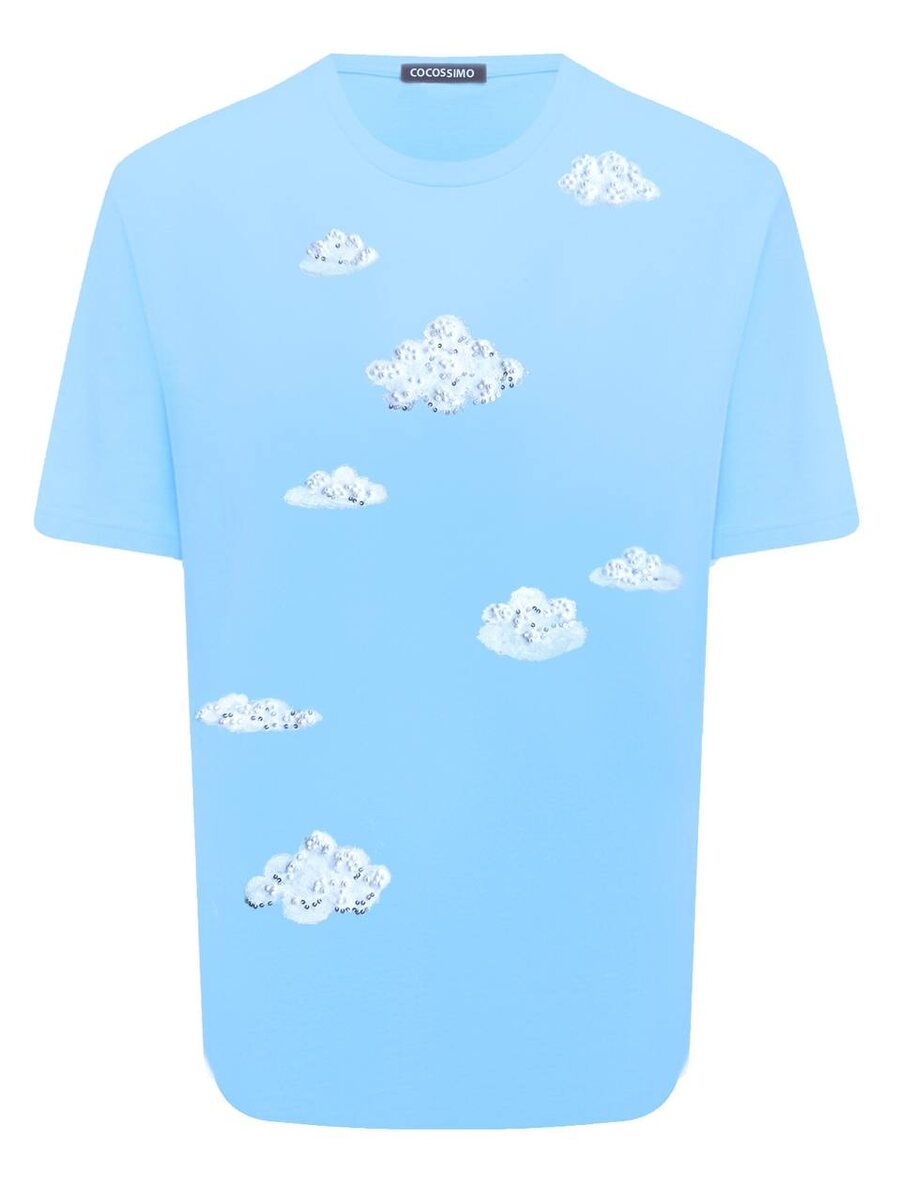 ☁️☁️☁️ Небесные футболки из бархатистого хлопка с белыми облаками, украшенными сверкающей вышивкой