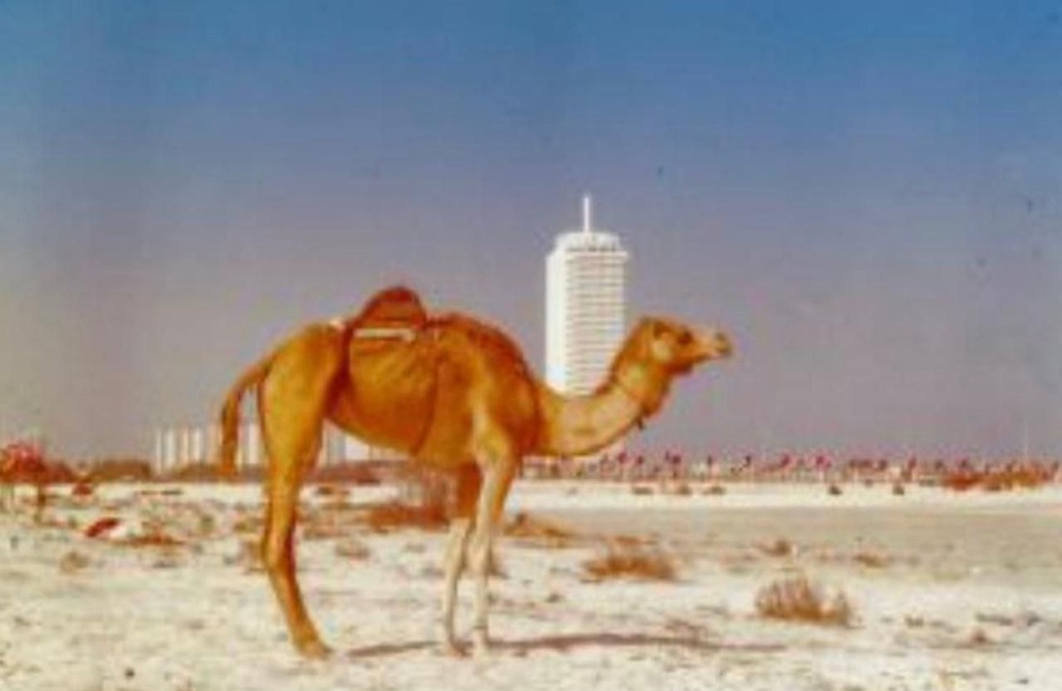 Кадр, в котором встречаются два мира. Пески, тишина и верблюд — рядом с символом будущего и глобальной торговли. 1979 год. Дубай ещё только делает первые шаги к статусу мирового мегаполиса. World Trade Centre — одиночная высотка на фоне пустыни, предвестник грядущего экономического рывка. 📍 Это фото — напоминание о том, как стремительно ОАЭ прошли путь от караванов к небоскрёбам, от традиций — к глобальному лидерству, не потеряв свою идентичность. История, застывшая в одном кадре. #Дубай #ОАЭ #ИсторияОАЭ #Дубай1979 #WorldTradeCentre #ИзПрошлого #ОтПустыниКНебоскрёбам #DubaiHistory