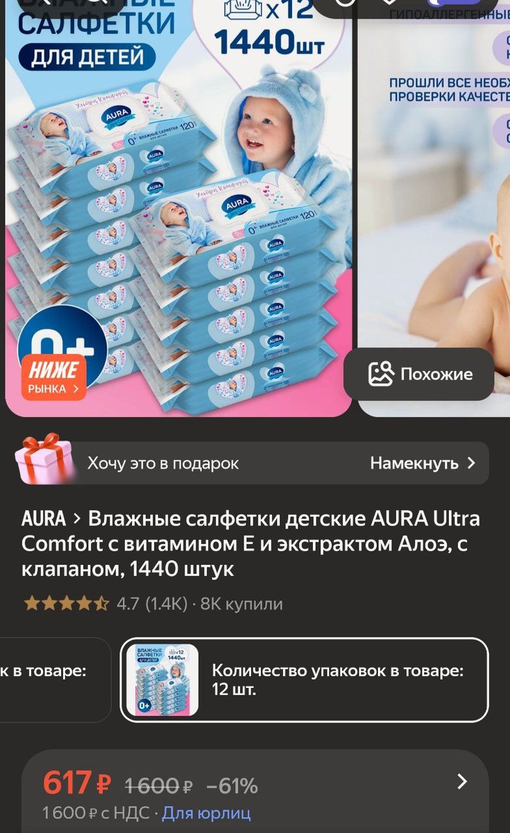 π»ΠΠ»Π°ΠΆΠ½ΡΠ΅ ΡΠ°Π»ΡΠ΅ΡΠΊΠΈ Π΄Π΅ΡΡΠΊΠΈΠ΅ AURA Ultra Comfort Ρ Π²ΠΈΡΠ°ΠΌΠΈΠ½ΠΎΠΌ Π ΠΈ ΡΠΊΡΡΡΠ°ΠΊΡΠΎΠΌ ΠΠ»ΠΎΡ, c ΠΊΠ»Π°ΠΏΠ°Π½ΠΎΠΌ, 1440 ΡΡΡΠΊ - 617Ρ