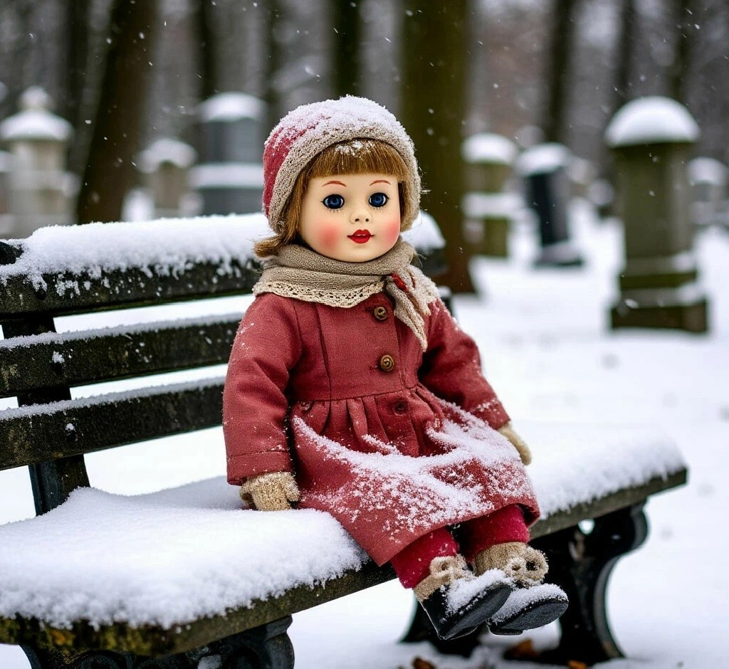 Валентина не стала его слушать. Она осторожно, с невероятным чувством вины и стыда, поставила куклу на её законное место, в центр, между другими игрушками. Она поправила её шёлковое платье, поправила шляпку. Потом, не в силах сдержаться, опустилась на колени в снег, не обращая внимания на холод.