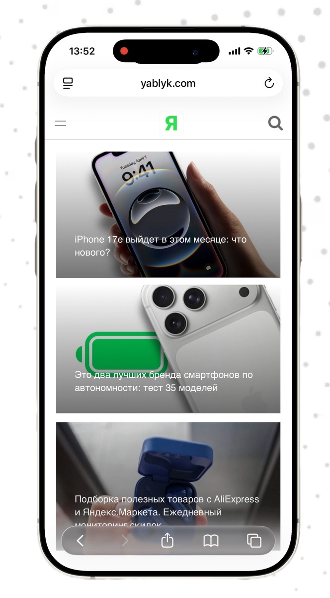 ! 1. Откройте Настройки на iPhone. 2. Пролистайте вниз и найдите Safari. 3. Внутри ищите раздел «Вкладки». 4. Перед вами откроется ключевое меню. Здесь всего три варианта. Выберите тот, который вам привычнее: * «Сжато» — это новый дизайн iOS. Минимум кнопок, некоторые меню спрятаны в подразделы. * «Внизу» — это внешний вид из iOS 18. Панель тоже внизу, но элементов управления и меню больше. * «Вверху»» — классика! Панель инструментов возвращается наверх, как в старых версиях iOS. Самый привычный вариант для многих. Просто выберите нужный пункт — и Safari мгновенно преобразится. Ничего перезагружать не нужно! Смотреть на YouTube: https://youtube.com/shorts/U7jYWhWBAwM?si=_7eOfjCDb2gh84YH В этом посте есть большое видео, которое не загрузилось в Дзен. Откройте оригинал поста в телеграме, чтобы его посмотреть