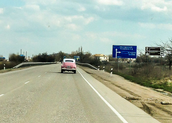 Ехали как-то с Леной из Старого Крыма в сторону Коктебеля и догнали бело-розовый ретромобиль. С некоторым трудом, кстати, я его догнал, потому что он летел по трассе со скоростью 110-120 и легко обходил фуры и автобусы. Пришлось напрячься, чтобы не упустить необычную машину. Любопытно стало посмотреть, что это за зверь. Так-то сзади очень даже похоже на легендарную "Победу", ГАЗ М-20. Но для "Победы" этот гость из прошлого необыкновенно резво себя ведет. Догнал ретромобиль уже на въезде в Насыпное. Пристроился сзади. И когда он повернул в сторону Коктебеля, то сомнений у меня уже не осталось - настоящая "Победа"! Эти машины выпускались на Горьковском автозаводе с 1946 по 1958 год. Получается, что этому автомобилю значительно больше полувека. А возможно, он старше меня. Во времена моего детства, по дорогам СССР бегало немало "Побед". Стильная была машина и очень неплохая для своего времени. "Победа" хорошо продавалась в Европе. В Финляндии, как и в СССР, "Победа" использовалась как так