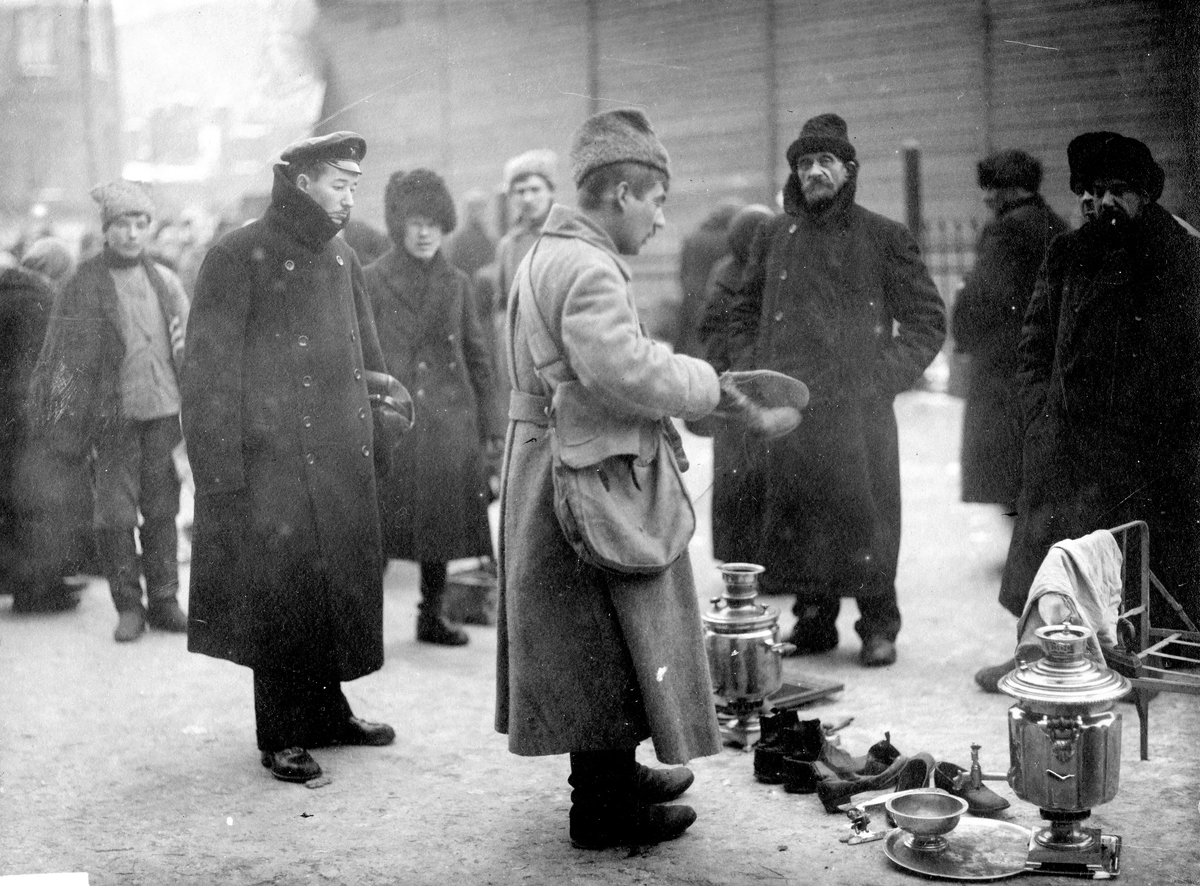 Государство национализировало всю крупную и среднюю промышленность — к 1920 году под контролем Советов находилось более 37 тысяч предприятий. Частную торговлю запретили, деньги фактически обесценились. Рабочим платили зарплату натурой — хлебом, мануфактурой, керосином. Бесплатными сделали коммунальные услуги, проезд в транспорте, посещение театров и музеев — не потому что было изобилие, а потому что денежная экономика рухнула.