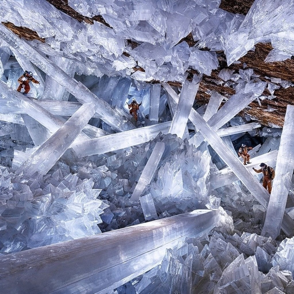 На глубине 300 м под городом Найка, в мексиканском штате Чиуауа, расположилась пещера, состоящая из гигантских кристаллов селенита длиной до 11 м и весом до 55 тонн — это пещера кристаллов Найка (Cueva de los Cristales). Как образовались кристаллы? Миллионы лет назад подземные воды, насыщенные гипсом и ангидритом, медленно охлаждались при стабильной температуре ~54-58°C. Посещать пещеру могут лишь ученые. Во-первых, кристаллы очень хрупкие. Во-вторых, температура в пещере может достигать +58°C, а стабильная влажность — 100%, что делает пребывание без спецснаряжения смертельно опасным (даже ученые в охлаждающих костюмах могут находиться там не более 1 часа). Терра инкогнита | Неизвестная земля