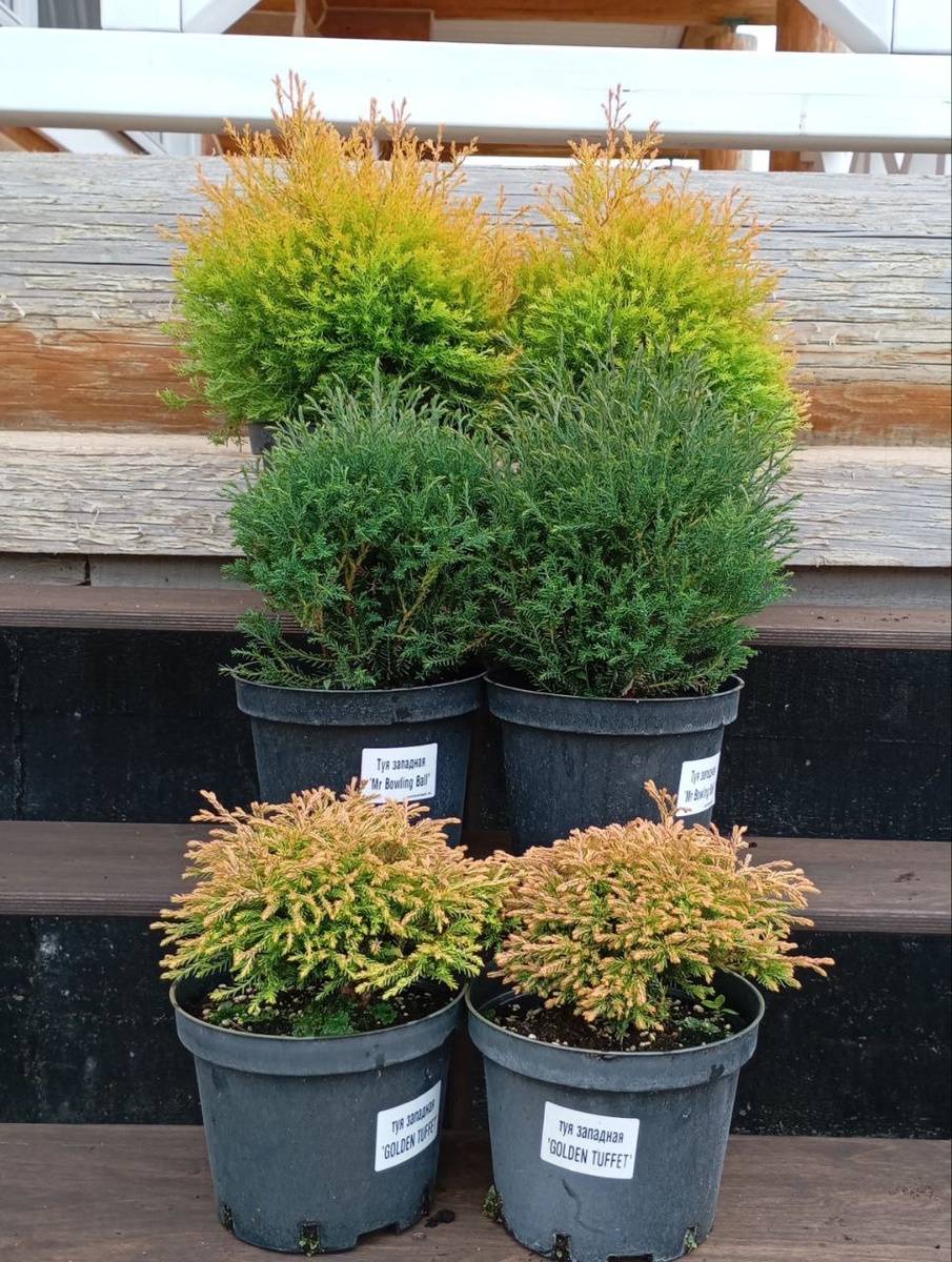 ! 🌟 1. Golden Tuffet — Золотой холмик 🟡 Этот малыш похож на примятое солнышко!Его побеги — нежные, нитевидные, а цвет — теплый, золотисто-желтый круглый год. Осенью он становится еще ярче, с медными нотками. Растет невысоким пушистым холмиком, который отлично смотрится в рокариях и на переднем плане клумб. 2. Mr. Bowling Ball 🟢Само совершенство!Идеально круглый, плотный шарик изумрудно-зеленого цвета с серебристым отливом. Не требует стрижки — его форма заложена природой. Мягкий на ощупь, как плюш. Идеален для элегантных садов, обрамления дорожек и даже для посадки в горшки у входа в дом. 3. Fire Chief — 🔴 Начальник пожарной охраны 🔥 Настоящий хамелеон!Весной он нежно-зеленый с кремовыми побегами, летом — салатово-желтый, а к осени вспыхивает яркими огненно-рыжими и красно-кирпичными оттенками. Его цвет зависит от сезона, поэтому скучно не будет никогда! Создает потрясающий акцент в любом уголке сада. Кому что подойдет: · Golden Tuffet — для тех, кто любит солнечные, яркие пят