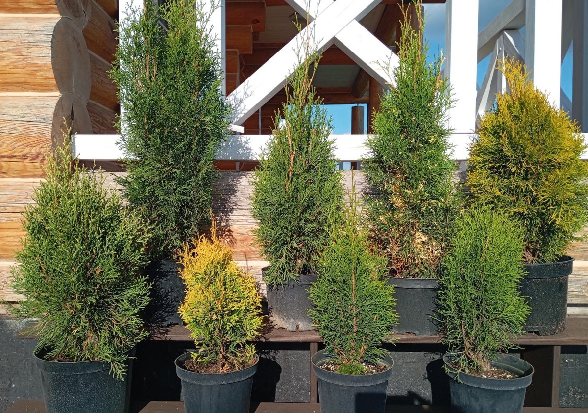 💎🌲 Готовы познакомиться с династией, которая не выходит из моды? Тогда рассказываем — кто есть кто в этом знатном семействе! 1.Туя Smaragd Gold Strike Главные фишки: неоновая желтизна, которая не выгорает и не зеленеет даже зимой! Четкая, узкоконическая форма как у классического Смарагда, плотная и ровная без лишней стрижки. Растет медленно, поэтому идеально впишется даже в небольшой сад. 2.Туя западная Smaragd - классика жанра! Эталон надежности и красоты, все ее любят за изумрудную хвою, которая не буреет зимой. Безупречная коническая форма без стрижки. Растет медленно и аккуратно – до 2-3 м. 3.Туя западная Smaragd Variegata.Насыщенная изумрудная хвоя с эффектными кремово-белыми мазками и вкраплениями. Каждое растение уникально! Почему она? Создает акцент круглый год.Меняет окраску: зимой белые участки часто розовеют – волшебно! Растет медленно, форма – плотная пирамидка Идеальна для тех, кто хочет выйти за рамки обычной зелени и добавить в сад светлых красок. 4. Туя западная Gold
