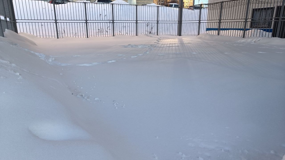 Площадку у магазина Деспорт в Мытищах занесло толстым слоем снега