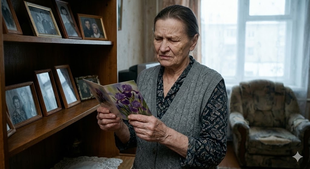 Нина Васильевна отодвинула открытку на длину вытянутой руки. Посмотрела на неё так, будто та могла ответить. День рождения был в ноябре. Три месяца назад. Ни звонка, ни сообщения. А теперь — открытка с чужим почерком.