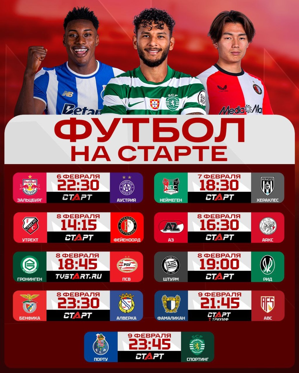 ! Начинаем в Австрии противостоянием «Зальцбурга» и «Аустрии», все выходные с нами Эредивизи, и завершим все это великолепие суперматчем «Порту» и «Спортинга» ⚔️ Смотрите европейский футбол на TVSTART.RU 🖥 Подписывайся на ТВ СТАРТ в MAX