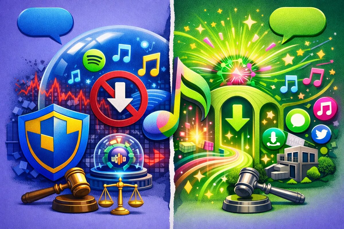 Между крупнейшей в мире музыкальной корпорацией Universal Music Group (UMG) и самым известным ИИ-стартапом Suno разгорается PR-битва. В центре спора — фундаментальный вопрос: какой должна быть модель работы генеративных музыкальных платформ? Два подхода — «закрытая экосистема» и «открытая студия» — столкнулись, и от исхода этого противостояния зависит, как миллионы пользователей будут создавать музыку с помощью ИИ. Позиция Universal: «закрытая экосистема» для защиты артистов UMG продвигает модель «закрытой экосистемы» (walled garden). Её суть проста: музыка, сгенерированная на платформе, не может быть скачана или распространена где-либо ещё. Этот подход уже реализован в рамках лицензионного соглашения UMG с конкурентом Suno — Udio, которое было заключено в октябре 2025 года. После сделки Udio отключил возможность скачивания треков. Позицию UMG чётко объяснил Майкл Нэш, исполнительный вице-президент по цифровым технологиям, в подкасте Billboard: «Концепция [„закрытой экосистемы“] заключ