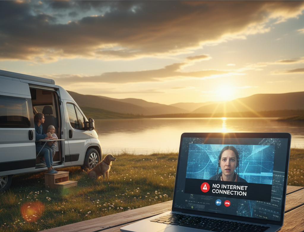 А потом приходит реальность и задаёт один очень неприятный вопрос: А интернет там вообще будет? Для нас это был не абстрактный интерес. Я работаю удалённо. Это значит, что без стабильного интернета поездка превращается не в свободу, а в дорогостоящий отпуск с дедлайнами, которые ты не можешь выполнить. Первая мысль: мы живём в 2026 году, LTE повсюду, карты покрытия красивые. На деле интернет «ловит», только пока ты в городе или на трассе (и то не всегда). Свернул к озеру - и начинается: сигнал падает, скорость скачет, видеозвонки рассыпаются, VPN отваливается. Помню первый созвон по дороге в Питер где-то уже в Ленобласти. Вокруг красота, на экране - созвон по Zoom. Связь обрывается на третьей минуте. Жена смотрит: «Ну я же говорила». Вторая мысль у 90% людей. У меня она тоже была. Да, иногда это р
