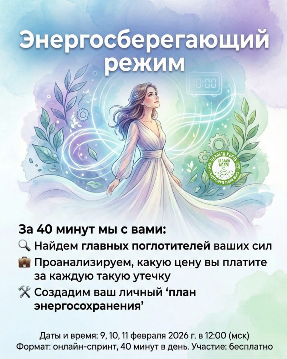 ⭐️⭐️⭐️⭐️⭐️⭐️⭐️ 😴 Вам знакомо чувство, когда уже с утра нет сил, хотя вроде ничего не делали? Когда энергия утекает, как вода сквозь пальцы, а вы не понимаете — куда? 👩🏻⚕️Пора ставить диагноз вашей усталости! Приглашаем вас на практический онлайн-марафон: «Как включить энергосберегающий режим для психики». 💊 За 40 минут мы с вами: 🔍 Найдем главных поглотителей ваших сил: те дела, мысли и обязательства, которые работают вхолостую. 🧰 Проанализируем, какую цену вы платите за каждую такую утечку. 🛠 Создадим ваш личный «план энергосохранения» — что можно смело вычеркнуть или переделать, чтобы сохранить ресурс. Результат: Вы выйдите с чётким пониманием, куда уходит ваша энергия, и с конкретными шагами, как остановить эти утечки. Чтобы оставалось силы на то, что действительно важно. Чтобы быть бодрее и счастливее. Даты и время: 9, 10, 11 февраля 2026 г. в 12:00 (мск) Формат: Онлайн-спринт, 40 минут в день. Участие: Бесплатно Ждём всех. ⤵️ https://t.me/MooMarafonBot