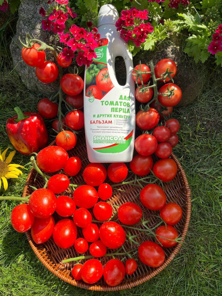 Для подкормки советуем использовать натуральное удобрение нового поколения с широким спектром применения. В составе бальзама комплекс макро- и микроэлементов и древесный уксус Шахкоал из скорлупы грецкого ореха для томатов.