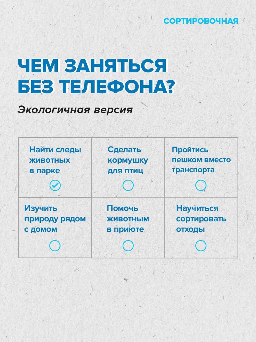 Чем заняться, когда под рукой нет уведомлений и бесконечной ленты? Собрали для вас подборку экологичных занятий — к ним можно возвращаться не только в этот день, но и в любое время 🌿 Подпишись — будь на зелёной стороне | Сортировочная в MAX
