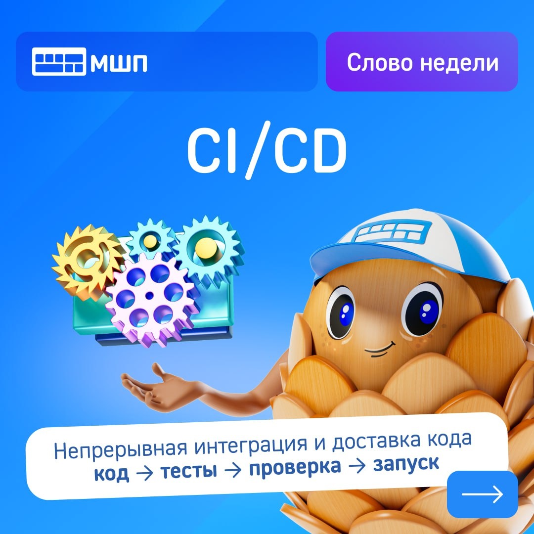 »? ❓ Чтобы программа работала, необходимо, что все её составные части функционировали правильно. О том, какая методология помогает сделать процесс отладки и запуска максимально удобным, рассказываем в свежем выпуске «Слова недели»! ✏️ Слово этой недели — CI/CD! О том, что это такое, что стоит в основе этой методологии, и почему стоит изучить её уже сейчас, смотрите в наших карточках! 📌 Готовы попробовать на практике? ✔️ Оставляйте заявку до 10 февраля, чтобы успеть поступить в МШП до конца зимнего набора! Последние открытые уроки в Москве: 📍 Проспект Мира — 10 февраля в 19:00 Ближайшие открытые уроки в Санкт-Петербурге: 📍 Приморский — 6 февраля в 17:00 📍 Новочеркасская — 6 февраля в 19:00 📍 Проспект Просвещения — 7 февраля в 17:00
