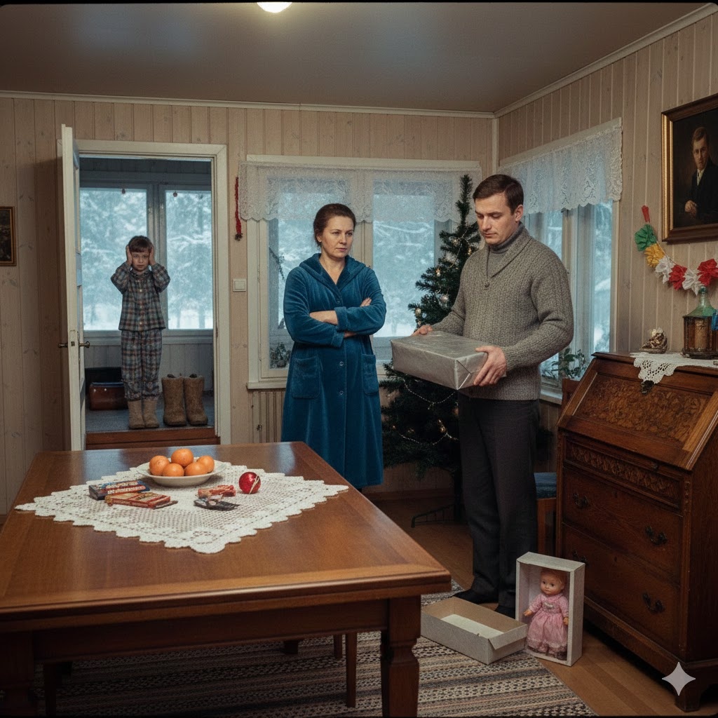 Холодный воздух ворвался в прихожую вместе с хлопьями мокрого снега. Марк застыл, сжимая в руке ту самую серебристую коробку, которая мгновение назад была причиной семейной ссоры. Теперь она казалась нелепым, громоздким куском картона, неуместным атрибутом праздника на фоне застывшей драмы на пороге.