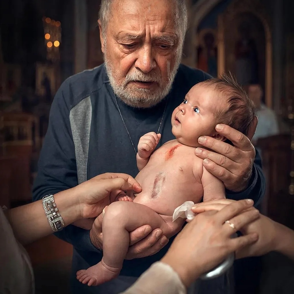 Первый внук. Продолжение рода Ковалёвых. Я, Роман Ковалёв, деда в третьем поколении. Гордость распирала, когда батюшка окунал малого в купель.