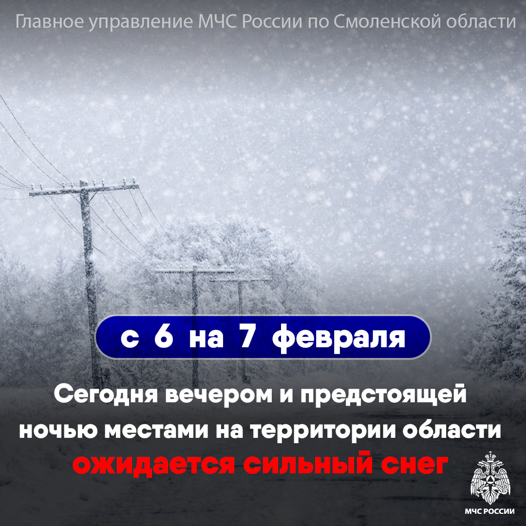 ❗️❗️ По информации Смоленского ЦГМС сегодня вечером и предстоящей ночью на территории области местами ожидается сильный снег. ❗️Будьте внимательны и осторожны! #МЧСРоссии #ПогодаСмоленск #МЧС_Смоленск #Смоленскаяобласть Подписывайся на МЧС России в MAX | ВК Подписывайся на МЧС Смоленск в MAX | BK | OK