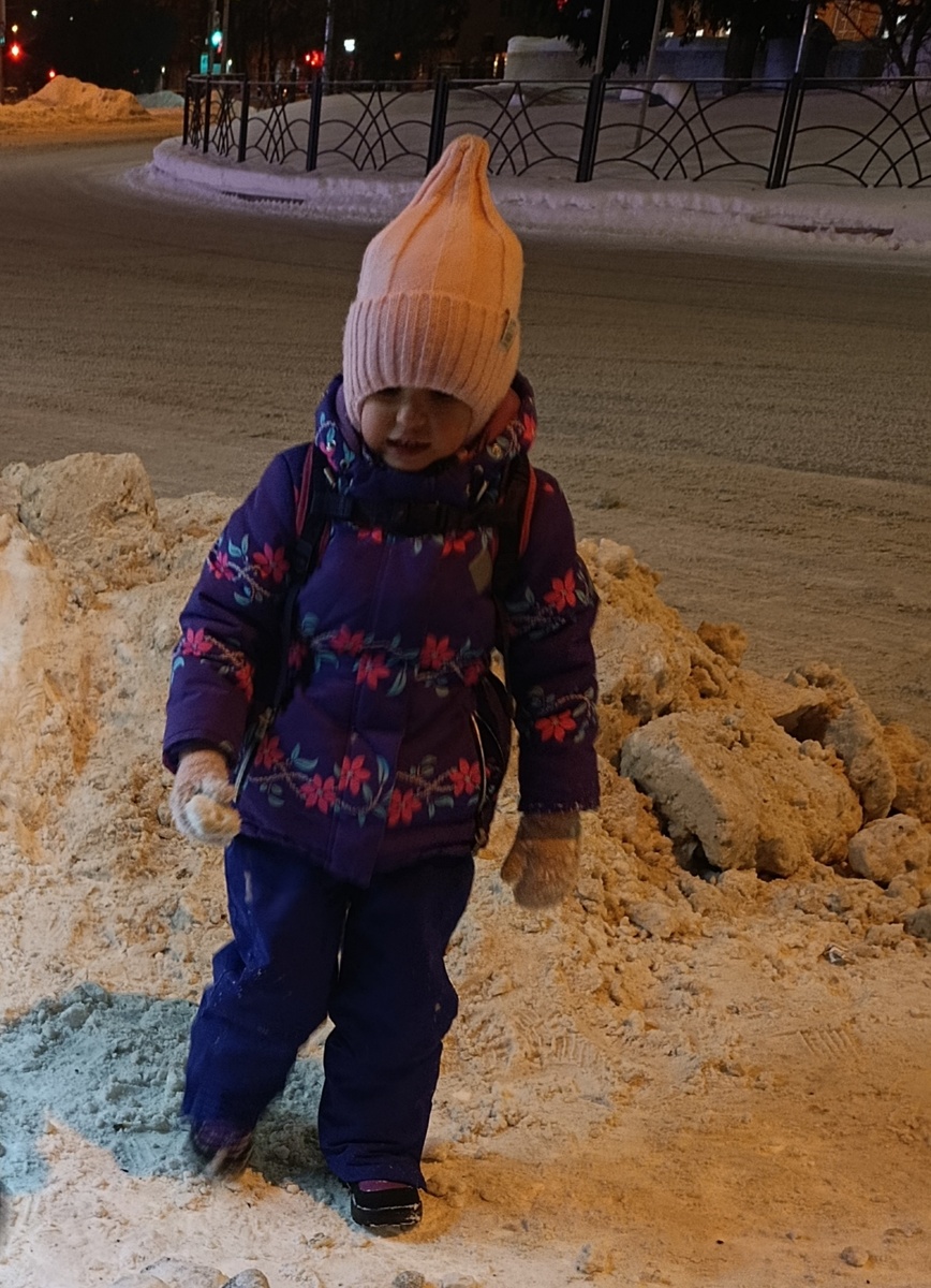 Забираем справку и уже пора забирать Юлю из садика, идем за ней. Забираем девочку, краем глаза вижу нескольких родителей на участке- сегодня строим снежную композицию. Конкурс, ага. Сбор в пять, а мне нужно ещё завести детей домой, Сëмка только что с больничного, находиться долго на ветру ему не желательно. Завожу детей, беру несколько перчаток и возвращаюсь в садик. Спасибо творческим родителям и талантливым организаторам, ваяем вот такую штуку в считанные минут сорок: