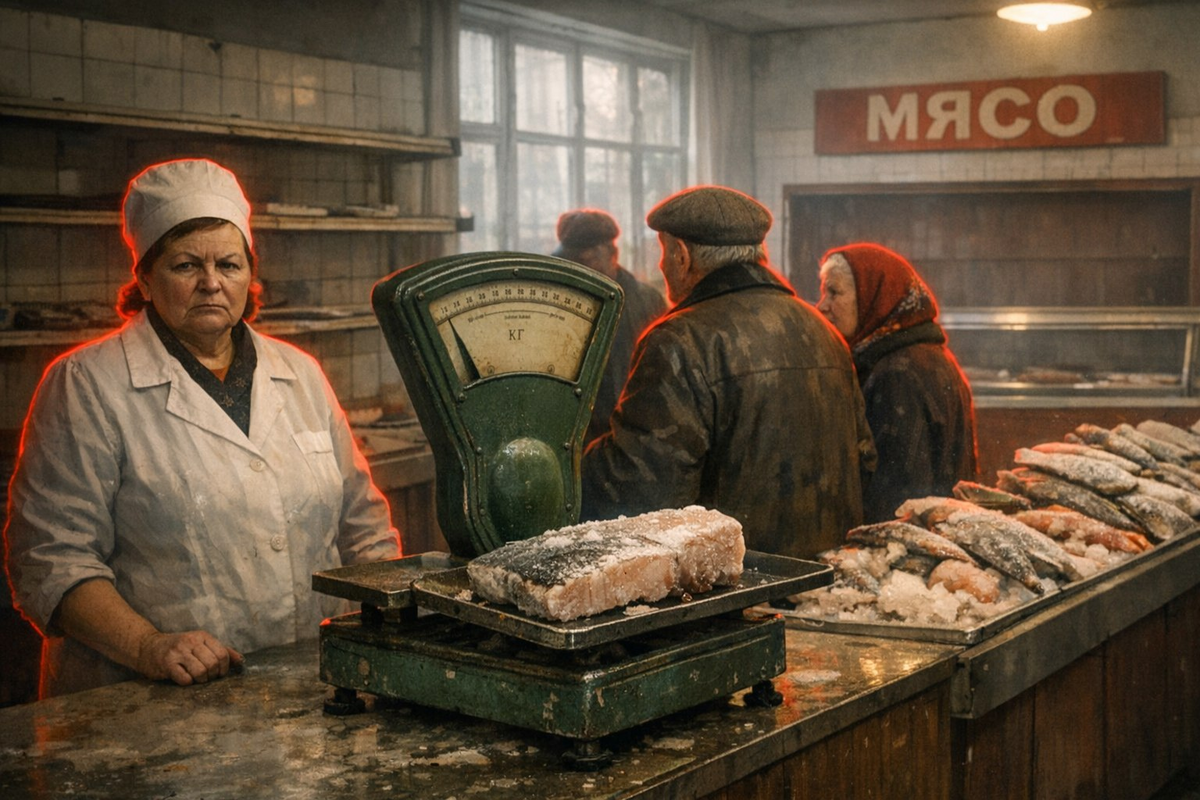 Представьте: вы стоите у прилавка советского магазина в 1976 году. Минтай — 38 копеек за килограмм. Хек — 50 копеек. Треска — 56. А теперь мысленно перейдите в мясной отдел. Там пусто. Или очередь на два часа. Или и то, и другое одновременно.