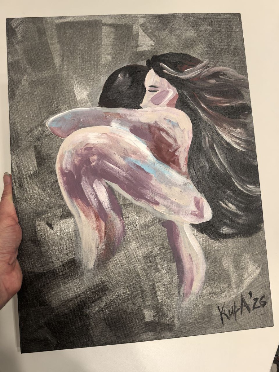😁 Во-первых, забрала новые холсты. Во-вторых, ко мне попали новые краски потрясающе красивых цветов, хотелось попробовать. В-третьих, я пыталась понять, как мы это сделаем без знаний о пропорциях тела, и базы анатомии. Итого, получилось вот так. План изначально был другой, но раз повело так, значит так. Фон - отдельное удовольствие, большими плоскими кистями создавать движение. В какой-то момент поняла, что стоп, достаточно. До сих пор не знаю, что там по пропорциям и думать об этом отказываюсь. Сам процесс - завораживает. 😍