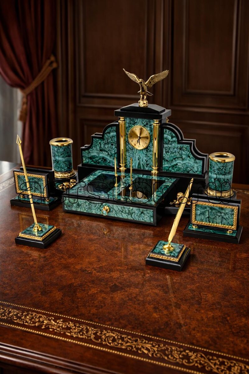 Письменный набор из малахита ПРЕЗИДЕНТСКИЙ ⨳ Материалы: малахит, долерит, ювелирная латунь, латунное литье, золото. ⨳ Габаритные размеры: 62 × 28 × 34 см. Вес: 25 кг. ⨳ Изделие укомплектовано: подарочной коробкой из натуральных пород дерева. ⨳ Авторская ручная работа. 🔸 Интернет магазин 📱 Телеграм канал 🔹 Дзен ✔️Поддержите наш канал пригласите своих друзей к нам! ✔️Жми на палец вверх!