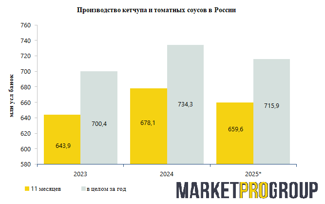 Производство кетчупа в России в 2025 году снизилось, несмотря на рост продаж в розничных сетях
