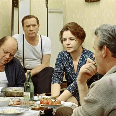 Белорусский вокзал. СССР, 1970. Режиссер Андрей Смирнов. Сценарист Вадим Трунин. Актеры: Алексей Глазырин, Евгений Леонов, Анатолий Папанов, Всеволод Сафонов, Нина Ургант, Любовь Соколова, Маргарита Терехова и др. 28,3 млн. зрителей за первый год демонстрации. История создания «Белорусского вокзала» довольно драматична. Сначала этот фильм должна была ставить Лариса Шепитько. Однако ее режиссерское видение сценария Вадима Трунина не нашло официальной поддержки, а на компромиссы она идти не хотела. В конце-концов эту картину о встрече фронтовиков, проводивших в последний путь своего фронтового друга, поставил Андрей Смирнов. Алексей Глазырин, Евгений Леонов, Анатолий Папанов и Всеволод Сафонов сыграли своих героев психологически убедительно и достоверно. «Художники сделали самое трудное в искусстве – властно повели нас, зрителей, за собой, за своими мыслями и чувствами, познакомили нас на экране с людьми, которых мы полюбили и в существование которых поверили. Раскрыли перед нами душу эт