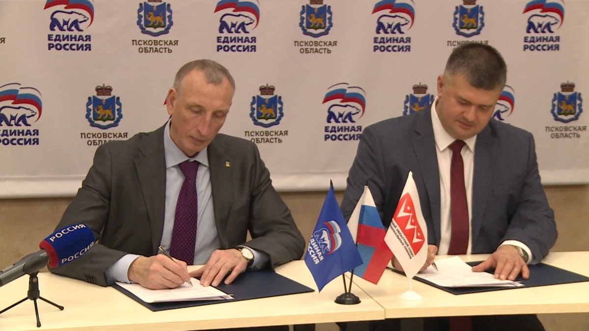 Подписи под документом поставили депутат Государственной Думы, секретарь реготделения Александр Козловский и председатель Псковского облсовпрофа Игорь Иванов. Достигнутые договоренности призваны укрепить взаимодействие партии с профсоюзным движением. При этом важная роль отводится институту сторонников "Единой России", который позволит людям труда и профсоюзным активистам напрямую участвовать в законотворческой работе партии. "Сегодня у нас задачи единые, что для партии, что для профсоюзов. Это заработная плата, социальные гарантии, вопрос охраны труда. То, что волнует сегодня профсоюзы и то, чем сейчас занимается партия", - Игорь Иванов, председатель Псковского областного совета профсоюзов. "Мы работаем по наполнению Народной программы и профсоюзы активно принимают участие, и мы благодарны за это взаимодействие. Сейчас задача отчитаться о сделанном и наполнить новыми наказами, новыми пожеланиями", - Александр Козловский, депутат Государственной думы, секретарь регионального отделени