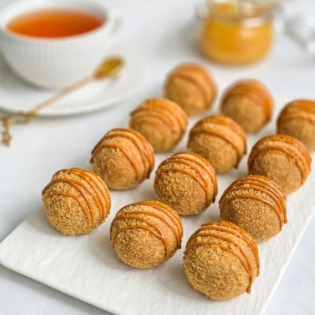 Крем смешиваем с оставшиеся крошкой от коржа и формируем шарики. По желанию во внутрь можно положить как начинку орешки или же варёное сгущёное молоко. Готовые шарики обваливаем в крошке.