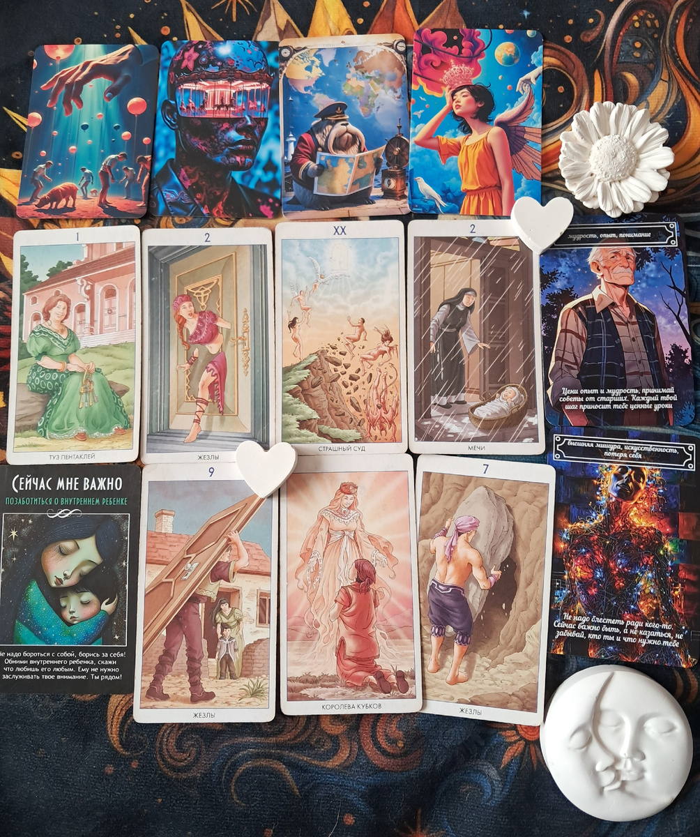 2. Интерпретируйте с опорой на себя: Смотрите на карты не как на приговор, а как на символы, которые резонируют с вашим внутренним состоянием. Что вы чувствуете, глядя на них? Какие ассоциации и мысли приходят?