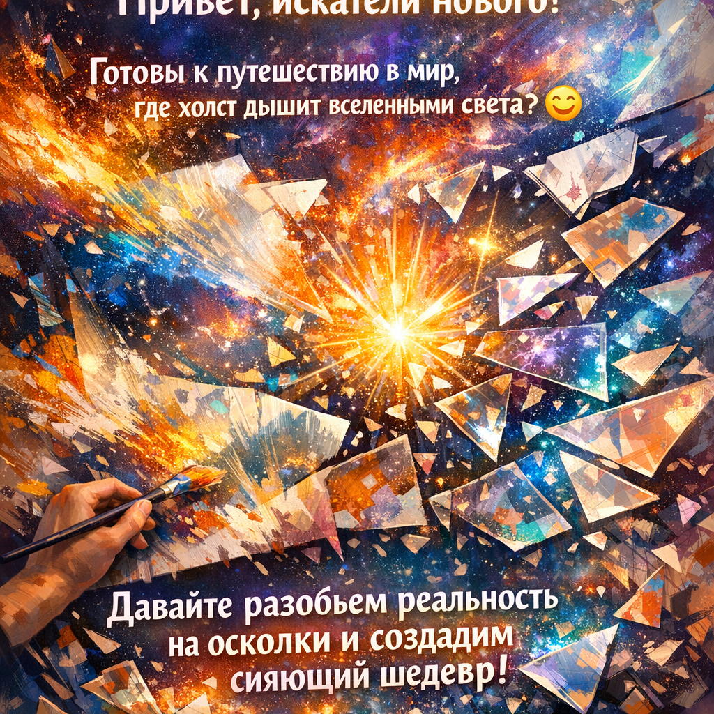 Привет, искатели нового! Готовы к путешествию в мир, где холст не просто существует, а дышит, пропуская через себя целые вселенные света? Где каждый мазок — не просто цвет, а смелый вызов обыденности, игра с формой и содержанием! 😄 Давайте вместе разобьем реальность на осколки и соберем ее заново — уже в виде сияющего шедевра.