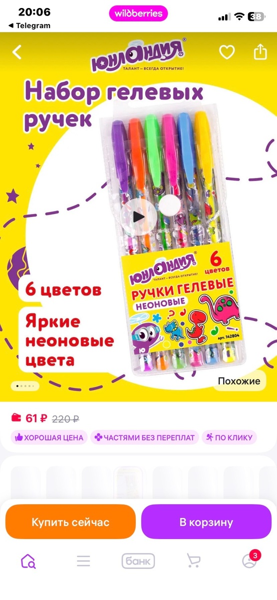 ЮНЛАНДИЯ Ручки гелевые цветные набор 6 шт, 6 цв
