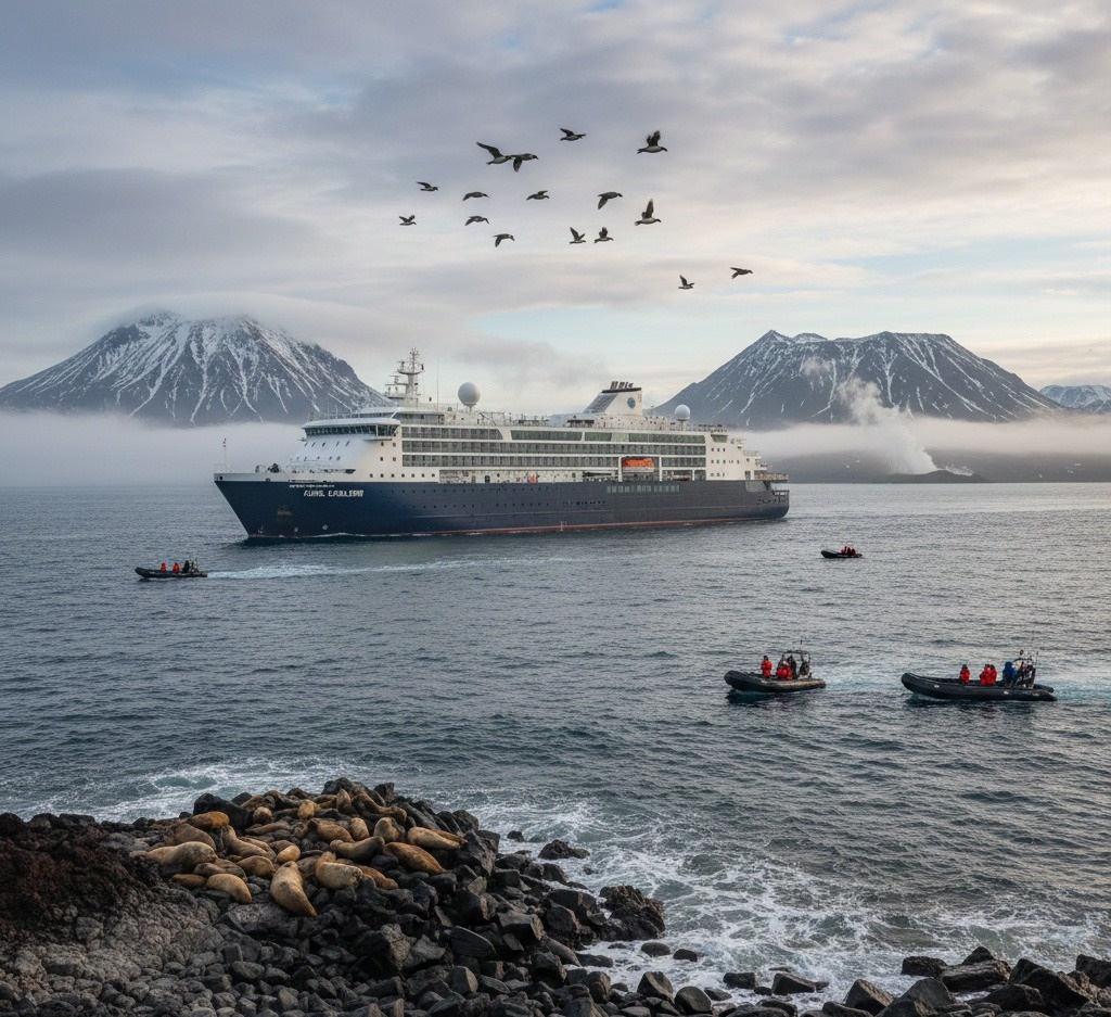 Есть места, которые невозможно объяснить логикой. Курильские острова — именно такие. Они не стараются понравиться, не подстраиваются под туристов и не обещают привычного комфорта. Зато дают то, чего всё меньше в современном мире, — ощущение настоящего края света. Курильские острова — это туманы, вулканы, океан и чувство, что ты оказался в другой реальности. Здесь нет массового туризма, зато есть пространство, тишина и природа, которая не делает скидок. И, пожалуй, самый честный способ познакомиться с этим регионом — отправиться в круиз на Курильские острова. Курильская гряда словно создана для морских путешествий. Многие острова труднодоступны с суши, а их характер раскрывается только тогда, когда смотришь на них со стороны океана. Курильские острова с воды выглядят сурово и красиво одновременно: резкие берега, вулканические склоны, туман, который меняет картину буквально каждые десять минут. Когда подходишь к островам по морю, появляется редкое чувство первооткрывателя. Нет ощущения «
