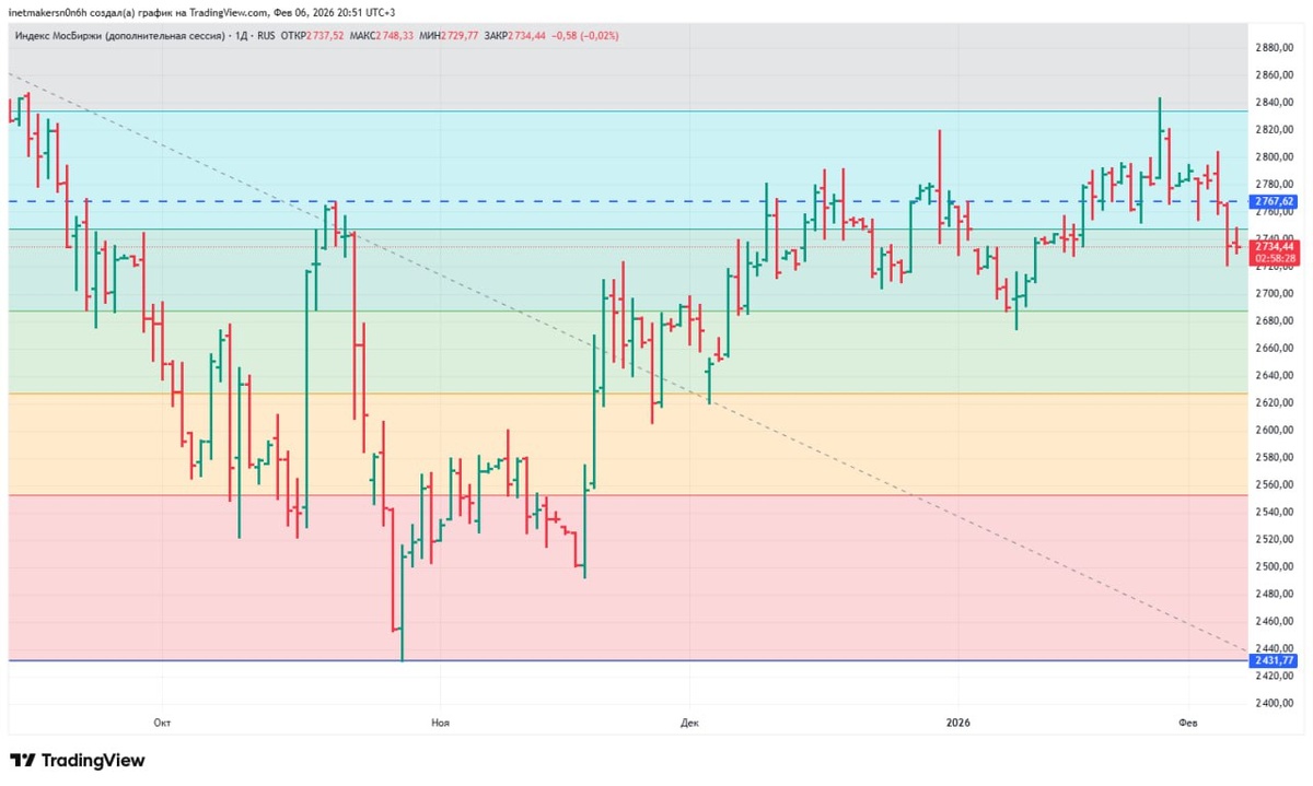 ❗️6 февраля российский фондовый рынок завершил рабочую неделю в “красной зоне”, индекс МосБиржи подешевел на 0,06% до уровня 2735,43