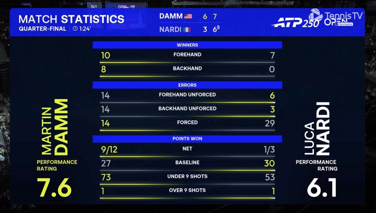 ⚡ ATP 250 Монпелье. Квалифаер Дамм выносит Нарди со счетом 6-3, 7-6(8).