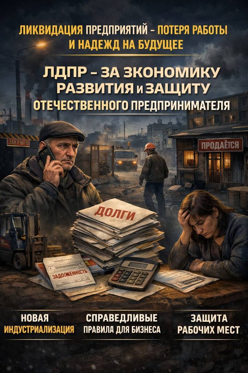 Количество закрывающихся предприятий превышает число новых, что напрямую угрожает занятости и устойчивости регионов. ЛДПР считает, что необходимы срочные решения для перехода к экономике развития. Основой должно стать поддержка отечественного производителя. Ключевые предложения ЛДПР: 1. Внедрение стабильной налоговой политики и обеспечение доступа к кредитам для развития бизнеса. 2. Защита предпринимателей от монопольного давления и недобросовестной конкуренции. 3. Реализация политики новой индустриализации, включая создание современных производств и развитие технологий. 4. Обеспечение роста реальных доходов граждан и справедливой оплаты труда. Отсрочка решений усиливает негативные сценарии и снижает доверие к экономической политике. ЛДПР настаивает на реализации мер, направленных на защиту бизнеса и создание условий для долгосрочного роста. Предложения ЛДПР подробно изложены в программной статье Председателя партии Л.Э. Слуцкого «Бизнес: сохранить нельзя потерять. ЛДПР – ЗА ЭКОН