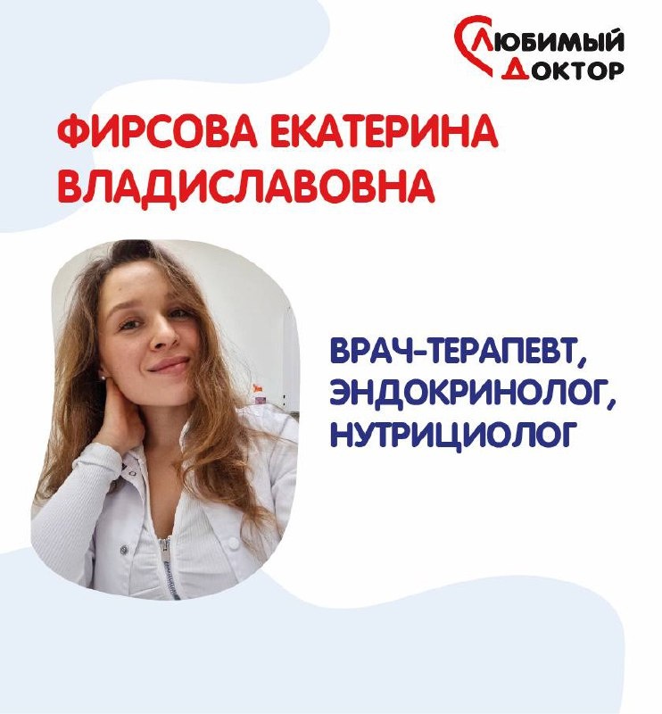 ! 👩⚕️ Фирсова Екатерина Владиславовна - 🩺 эндокринолог , терапевт , нутрициолог. Теперь принимает и в дневное время 🌤 Это удобно, если нужно прийти на приём без спешки ⏰, в комфортное время ➕ и спокойно обсудить всё, что волнует 💬. ✨ Екатерина Владиславовна — врач комплексного подхода. Она помогает разобраться не только с анализами 📃, но и с причинами плохого самочувствия 💙 🔍 К доктору обращаются, если: ✅ усталость, колебания веса, отёки 😴 ✅ нарушения работы щитовидной железы ✅ гормональные сбои ⚖️ ✅инсулинорезистентность, предиабет, диабет ✅ вопросы питания 🍎 и дефициты ✅ и др. 🩺 На приёме — внимательное отношение 🤍, понятные объяснения и индивидуальные рекомендации 📩. 📌 Обратите внимание на дневные окна записи и выбирайте удобное время .🕒 «Любимый доктор» — когда о здоровье заботятся внимательно и по-настоящему 💙. 📍Мы находимся на Бутлерова, 20 и Фучика, 55б. 📍Телефон для контакта +7 (843) 500-51-38, +7 (843) 212-24-44 📍 Сайт new.love-dr.ru.